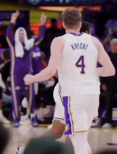 NBA季后赛直播在线观看-布朗尼拿到了本赛季的第一分!他接到里夫斯的传球,完成了一记势大力沉的扣篮,勒布朗高举双臂庆祝,他的女友也在社交媒体上发布了庆祝信息